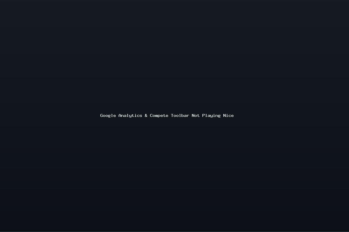You can probably guess the problem and solution from the title of this post. After installing the Compete toolbar as an extension for Firefox, Analytics started acting funky. I couldn’t change the dates for the reports or view the majority of things I wanted to view. Graphs wouldn’t display and clicking on one of the tabs did nothing more than highlight the tab color without displaying the requested info. The one extension seemed to break about 80% of the functionality of Analytics and made the application 100% useless.