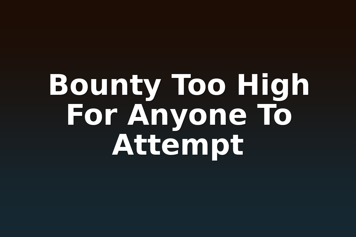 A bounty represents a financial or symbolic reward offered for the completion of a specific task, the capture of a target, or the resolution of a problem. When the reward exceeds the perceived ability of available participants to undertake the task, the bounty is described as "too high for anyone to attempt." This phenomenon appears across historical, legal, economic, and entertainment contexts. The concept is relevant to discussions of incentive design, risk assessment, and market efficiency. This article examines the origins, manifestations, and implications of excessively high bounties, drawing on case studies from the Old West, contemporary cyber security, and digital gaming environments.