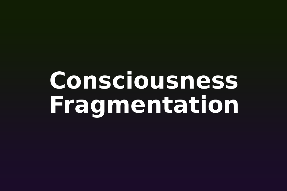 Consciousness fragmentation refers to the dissociation of the subjective experience of self and awareness into multiple, often competing, components. In this phenomenon, an individual may perceive distinct, sometimes conflicting, mental states that are not seamlessly integrated into a coherent narrative. The term has been used across diverse fields, including clinical psychology, neuroscience, and philosophy, to describe conditions such as dissociative identity disorder (DID), certain forms of trauma‑related psychopathology, and temporary states induced by neuropharmacological agents. The fragmentation of consciousness can arise from both pathological processes and experimentally induced alterations of brain function, providing a window into the underlying architecture of self‑hood and cognition.